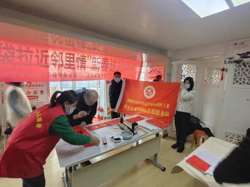 書法有行、隸、草等多種書法體,大家相互交流,相互學(xué)習(xí)。書法愛好者們將一副副飄著墨香的“?!弊炙偷骄用袷种?,同時也把祝福和溫暖送到每位居民的心坎上。